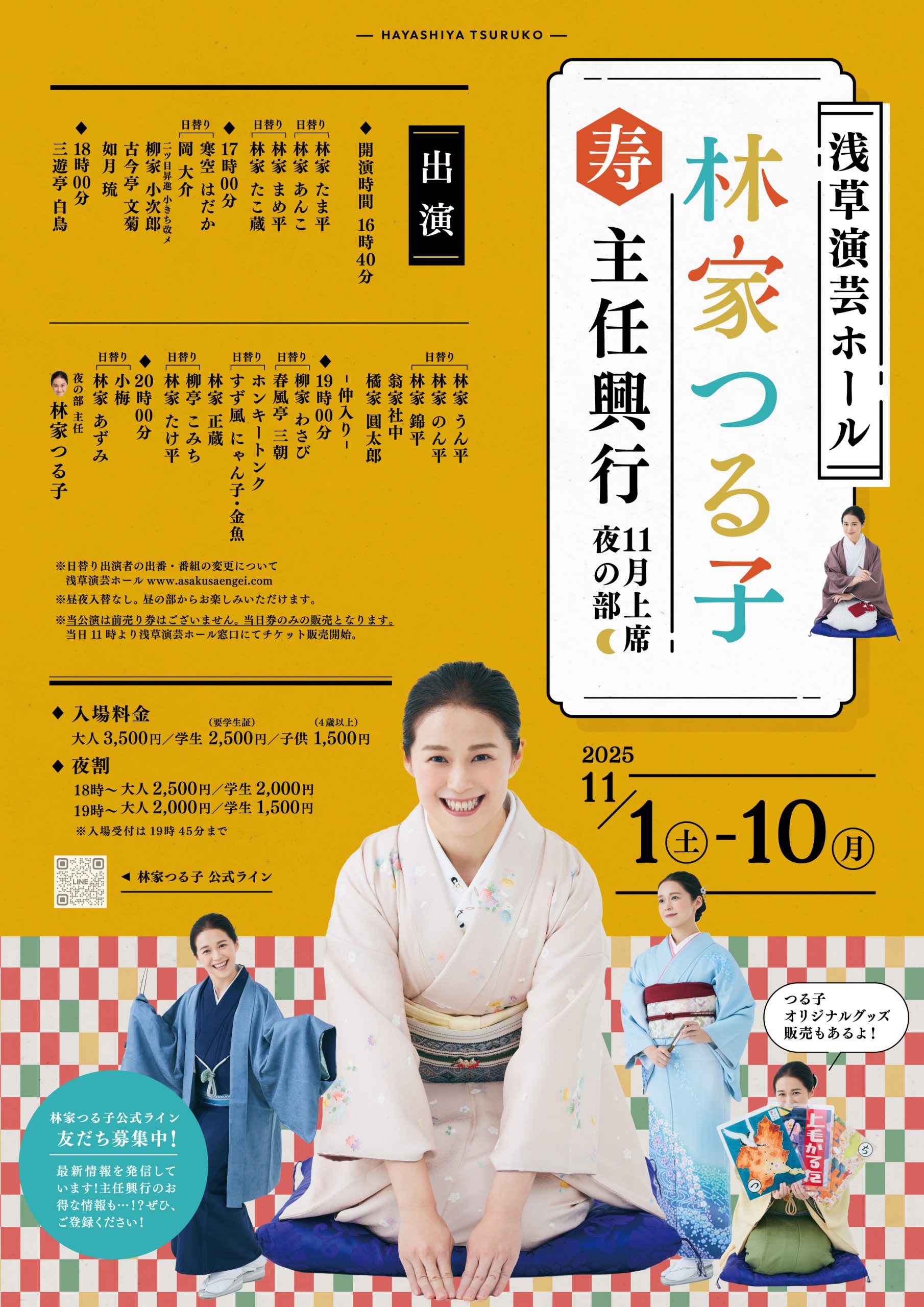 浅草演芸ホール11月上席・夜の部「林家つる子主任興行」