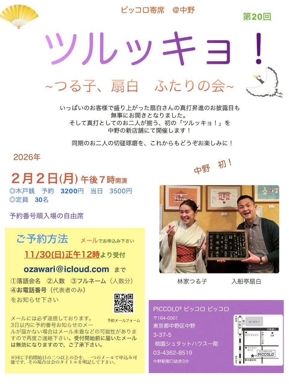 第20回 ツルッキョ!〜つる子、扇白 ふたりの会〜